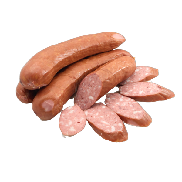 «Чесночная с дымком» Колбаса полукопченая Мясной продукт категории В охлажденная СТО 0133531368-001-2018 Состав: Свинина полужирная, мясо кур, говядина жилованная второго сорта,шпик, растительный белок, вода питьевая, нитритно-посолочная смесь(фиксатор окраски нитрит натрияЕ250, соль поваренная пищевая), чеснок свежий перец чёрный молотой, (антиокислитель Е301, стабилизатор Е450, усилитель вкуса и аромата Е621). Пищевая и энергетическая ценность в 100г продукта: белок – 11,0 г, жир – 22,0г